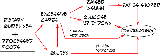 In the following video Robert Lustig explains the main cause of obesity: if your body makes too much insulin, instead of using all the food you eat it stores part of it as fat. Your metabolism needs that energy that was stored as fat and makes you eat extra calories to get it.