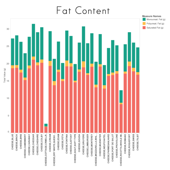 • El queso tiene fundamentalmente grasa monoinsaturada (verde) y saturada (rojo):