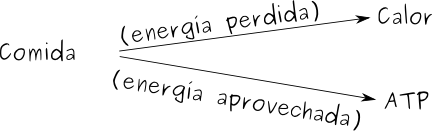 Las calorías de la comida lo que nos dicen es cuánto calor se podría llegar a obtener si el proceso fuese 0% eficiente, es decir, si no generásemos nada de ATP y toda la energía se perdiese en forma de calor, empleando una reacción de oxidación.