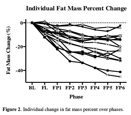 Pero no lo veo como una pega, al contrario. Los contadores de calorías suponen que ése es el déficit porque ignoran la existencia de cambios en el gasto energético no relacionados con el ejercicio. Este estudio demuestra que esa suposición es errónea, pues la pérdida de peso y grasa no fue lineal, tal y como ellos dicen que debería haber sucedido. Tras décadas de sonoros fracasos, deberían empezar a plantearse que las leyes de la termodinámica no respaldan sus teorías.