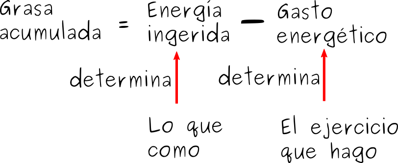 Y reorganizando los términos de la ecuación, verás que precisamente ése es el primer error que cometen los «expertos», interpretar que las matemáticas nos dicen qué hacer para controlar la grasa acumulada: