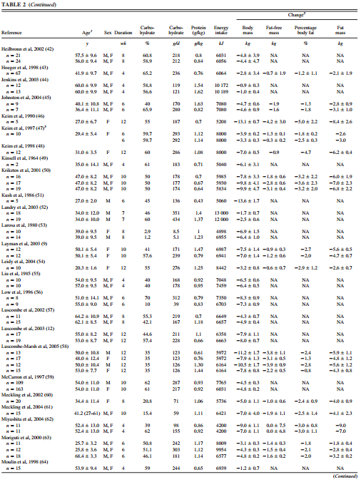 Estudio de 2006 titulado «Effects of variation in protein and carbohydrate intake on body mass and composition during energy restriction: a meta-regression«. Estudio que examina 87 estudios de intervención dietaria, con un total de 165 grupos de intervención.
