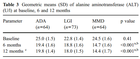 La dieta MMD, la que tenía más grasa y menos carbohidratos fue la que más redujo la ALT.