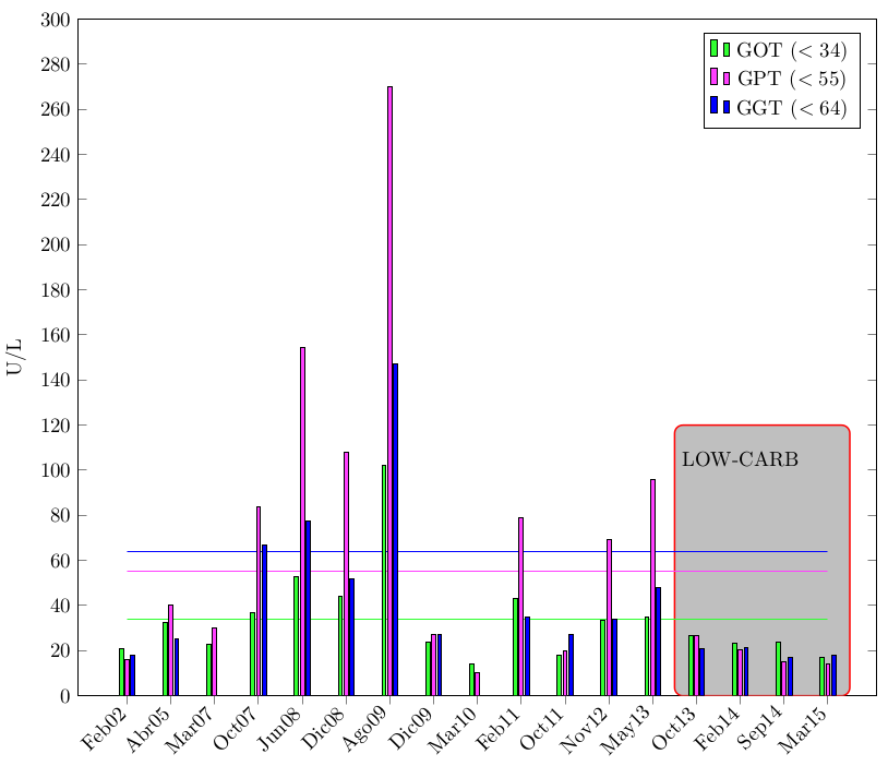 • adoptar una dieta baja en hidratos de carbono y alta en grasa (la de los alimentos de verdad) durante un mes y hacerse unos nuevos análisis clínicos, a ver qué tal están las transaminasas. La transición a la dieta low-carb yo la haría gradual, reduciendo poco a poco la cantidad de hidratos de carbono a lo largo de una semana, para evitar una «sobrecarga» de grasa dietaria mientras el cuerpo todavía no está acostumbrado a quemar grasa.