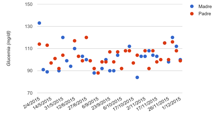 Glucosa en ayunas de mis padres (diciembre 2015)