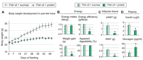 “High-glycemic index carbohydrates abrogate the antiobesity effect of fish oil in mice“