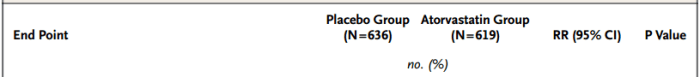 Más muertos con la estatina que con placebo. Incremento absoluto del 0.7% en la mortalidad.