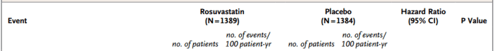 No saben por qué la estatina no hizo nada “We do not know exactly why rosuvastatin did not reduce the frequency of the primary composite outcome.”