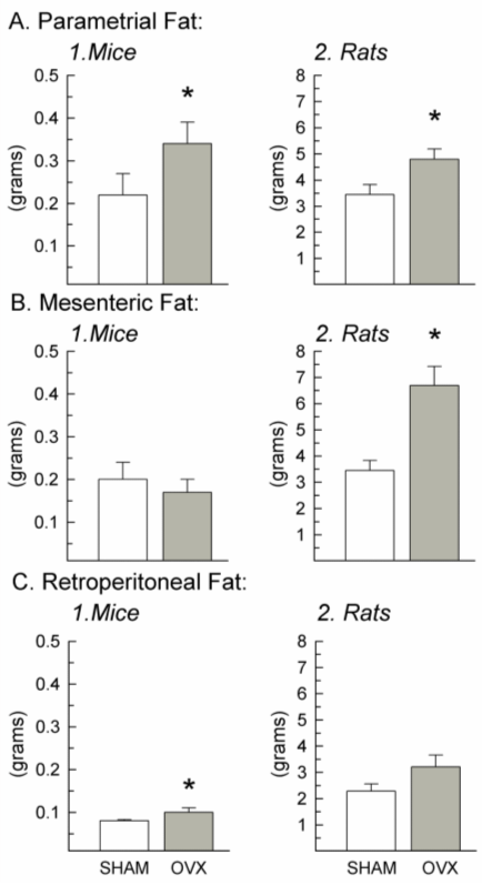 En ambos casos, ratas y ratones, debido a la operación se ganó grasa corporal sin que hubiera aumento en la ingesta energética. Aparentemente, a consecuencia de la operación los niveles hormonales (estradiol y progesterona) han cambiado, y los adipocitos se han vuelto más lipofílicos, es decir, ahora tienen tendencia a acumular más grasa corporal que antes.