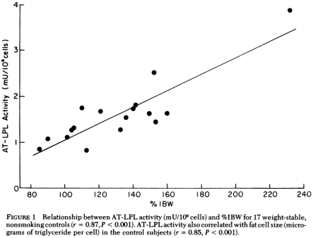 Therefore, AT-LPL activity may change to regulate fat cell size to the preset level, whether this level is obese or normal. The factors determining this preset level and signals affecting AT-LPL activity have yet to be determined.