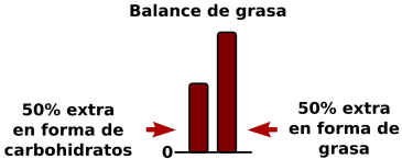 encontramos que para cantidades equivalentes de energía excesiva, la grasa produce más acumulación de grasa corporal que los carbohidratos.