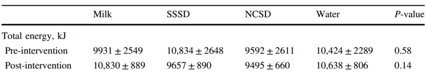 No differences were observed in energy intake between the beverage groups.