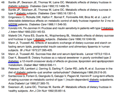 NOTA: me parece cuestionable que se combinen en un mismo metaanálisis sustancias como la glucosa, sacarosa y fructosa que son procesadas de muy diferente forma por nuestro cuerpo. Es más razonable concluir que no hay datos para hacer un metaanálisis en condiciones, que extraer conclusiones de un conjunto de datos inadecuado por inconsistente. Parece que en temas de nutrición no hay ningún tipo de filtro a la hora de publicar: «a broken peer-review system», que decía alguien por ahí, con toda la razón del mundo.