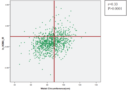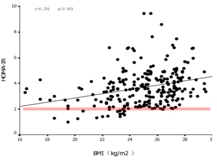 En rojo, resistencia a la insulina frente a IMC: