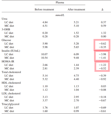 Mismo resultado en este otro experimento (nótese que la ingesta energética fue superior en el grupo low-carb):