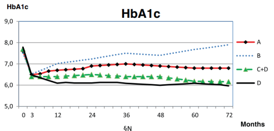 Durante el seguimiento de este estudio murieron un 8% de los participantes diabéticos, mientras que sólo murió un 3% de los participantes del grupo control (no diabéticos). La probabilidad de morir por cualquier causa, o en concreto por enfermedad cardiovascular, crecía con la HbA1c, siendo hasta 10 veces mayor en las personas que peor control glucémico tenían que en las personas del grupo control: