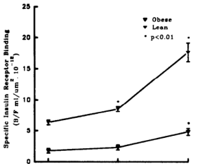 Administration of diazoxide, a known inhibitor of insulin secretion, has been shown to be associated with an increase in insulin receptor sites in peripheral lymphocytes and hepatic cells (16, 17). However, the effect of diazoxide has not been studied in adipocytes, where fat accretion mainly occurs. Theoretically, if insulin secretion can be inhibited and at the same time insulin receptor binding increased, a method of decreasing lipogenesis without inducing hyperglycemia may be achieved.