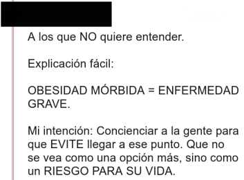 Y un comentarista dice: «Sí señor, la obesidad es saludable» (evidente tono irónico).