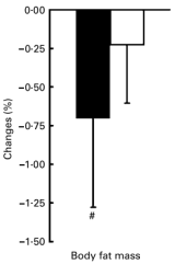 Misma grasa corporal de partida en ambos casos, por si alguien quiere atribuir la diferencia a diferencias de partida entre grupos. Masa grasa perdida en ambos grupos: