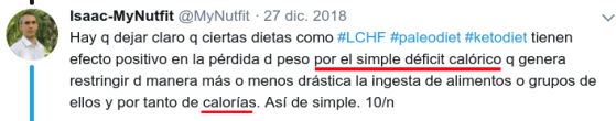 NOTA: Isaac González no es el primer médico o nutricionista en afirmar que la crítica a CICO supone negar las leyes de la termodinámica (ver,ver,ver,ver,ver). Eso sí, está a tiempo de ser el primero en argumentar lo que está afirmando. Bueno, no, en realidad no tiene ninguna posibilidad de ser el primero.