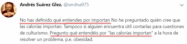 Andrés pregunta en twitter qué significa que las calorías «importan», y, curiosamente, la única respuesta que obtiene es «importan».