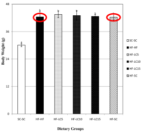- con la dieta engordante, comiendo poco se ha almacenado grasa corporal, mientras que