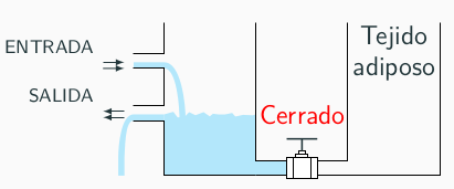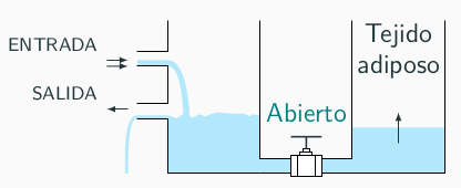 Pero si abrimos la válvula, el depósito «tejido adiposo» empezará a llenarse: