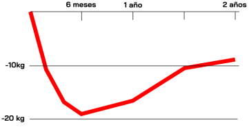 Y el otro dato que vemos en la gráfica anterior es que realmente no estamos hablando de dieta cetogénica más que durante dos meses y medio en el mejor de los casos, por lo que es imposible sacar conclusiones a largo plazo sobre la dieta cetogénica con estos datos.