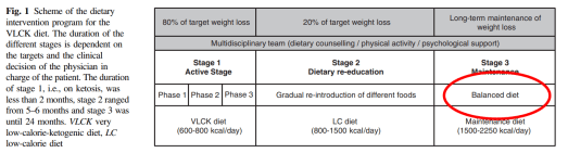 the patients underwent a progressive incorporation of different food groups and participated in a program of alimentary re-education to guarantee the longterm maintenance of the weight lost. The maintenance stage, which lasted 2 years, consisted of an eating plan balanced in carbohydrates, protein, and fat. Depending on the individual, the calories consumed ranged between 1500 and 2000 kcal/day, and the target was to maintain the lost weight and promote a healthy lifestyle.
