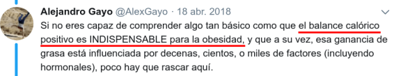 En definitiva, la base de la pseudociencia del balance energético es deducir causalidad de una correlación (ver), creyendo que hay información en usar una tautología (que es decir lo mismo de otra forma).