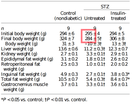 Los grupos sin insulina perdieron unos 20 g de peso en 6 días, mientras que los que recibieron las inyecciones de insulina perdieron únicamente 10 g.