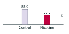 Dos grupos de ratas. Ambos consumen la misma cantidad de comida, pero a uno de los dos se le administra nicotina. [1]