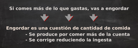 sin más base que una tautología (i.e. decir lo mismo de otra forma) se hace creer a la gente que engordar o adelgazar son una cuestión energética y que es inevitable tratar el problema hablando de calorías